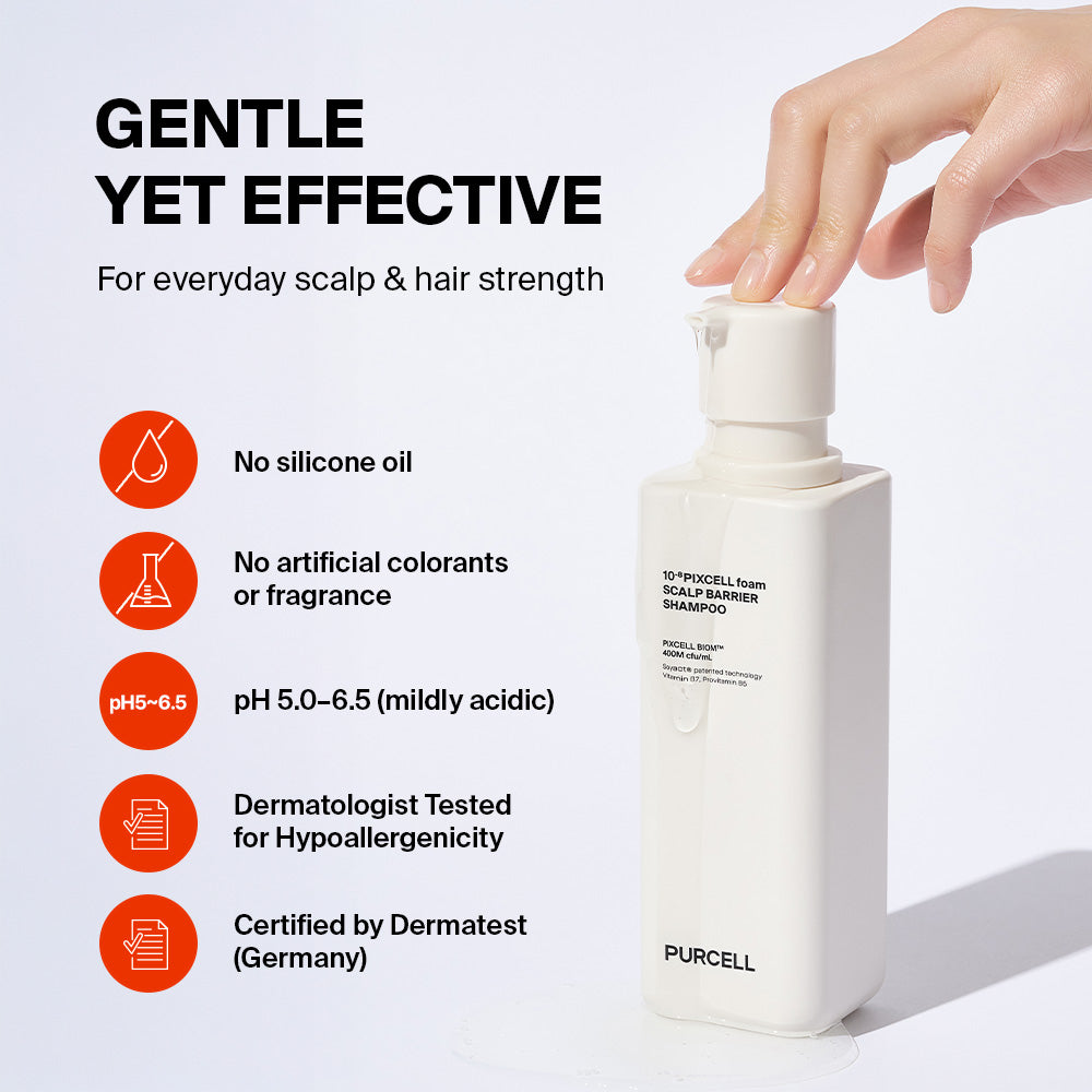 Purcell Pixcell Biom™ Scalp Barrier Shampoo is a gentle, microbiome-focused shampoo formulated to support a healthy scalp barrier while soothing sensitivity and imbalance. Powered by a patented 90% lactobacillus-based solution, this high-concentration formula helps strengthen the scalp’s protective barrier and promote a balanced scalp environment.